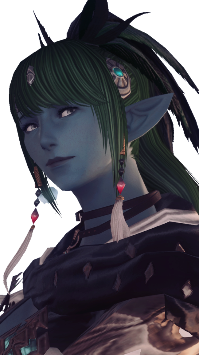 A tall, blue lady to put it bluntly. Rowan is a shy but capable adventurer who managed to catch the attention of one Papalymo Totolymo while questing in the Twelveswood. Soon after meeting with the rest of the Scions, she forms a kinship with Urianger, the chronicler and Primal scholar. Using bow and lance, she defeats her foes in combat, but is inquisitive enough to seek learning in magic. By the grace of Hydaelyn she is able to slay Primals, and will stop short of nothing to protect the realm.