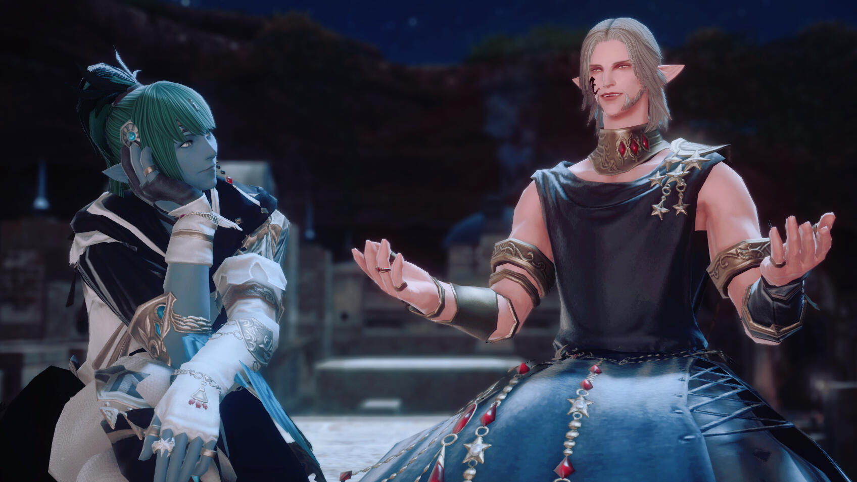 After realizing that Urianger was the prophet of the Calamity, Rowan gave an awkward thank you that lead to him loaning her the book Aether and Anatomy. From there, the two enjoyed conversations on aetherology and a myriad of other subjects. Despite the ease they felt around the other, both were reluctant to start a relationship, citing things like inter-organizational tensions if they were to break up, or the death of a dear friend. It takes a true separation and some emotional growth for the two of them to decide that, yes, they are dear enough to risk their easy friendship. Luckily for the two of them, it seems they're compatible!